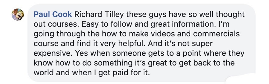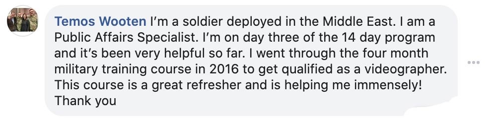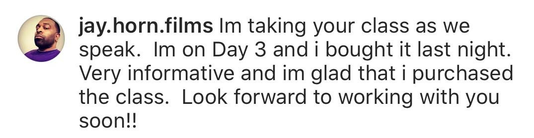 "I’m enrolled in 3 other cinematography classes besides this course and I want to thank you for walking us step-by-step through this process. I’ve learned more from your classes in less than 14 days than 2 years of college"